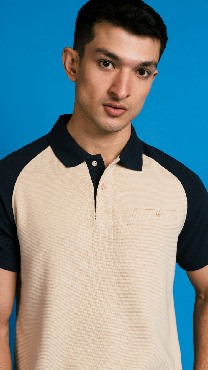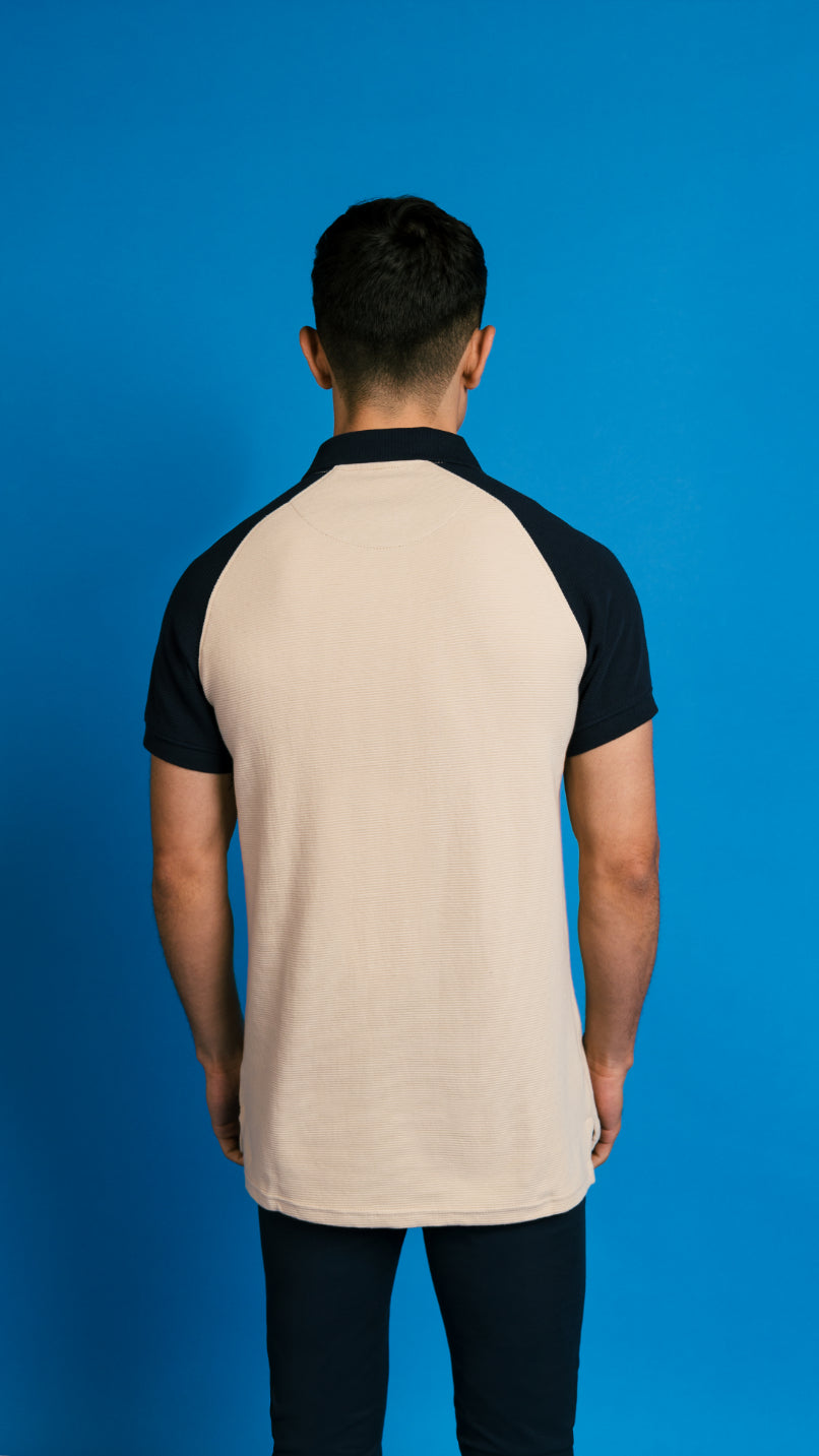 Men's Beige Reglan Sleeves Polo Shirt