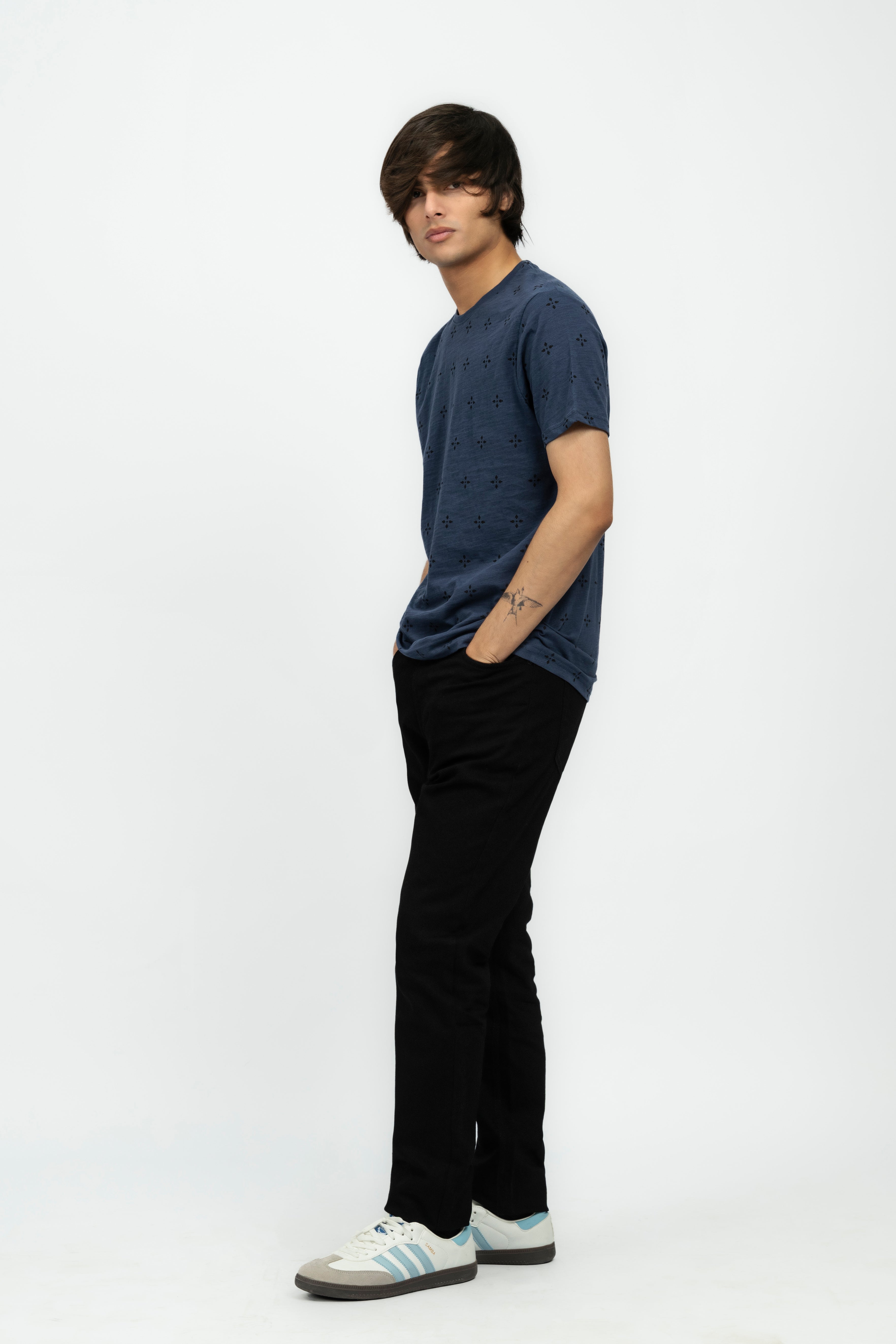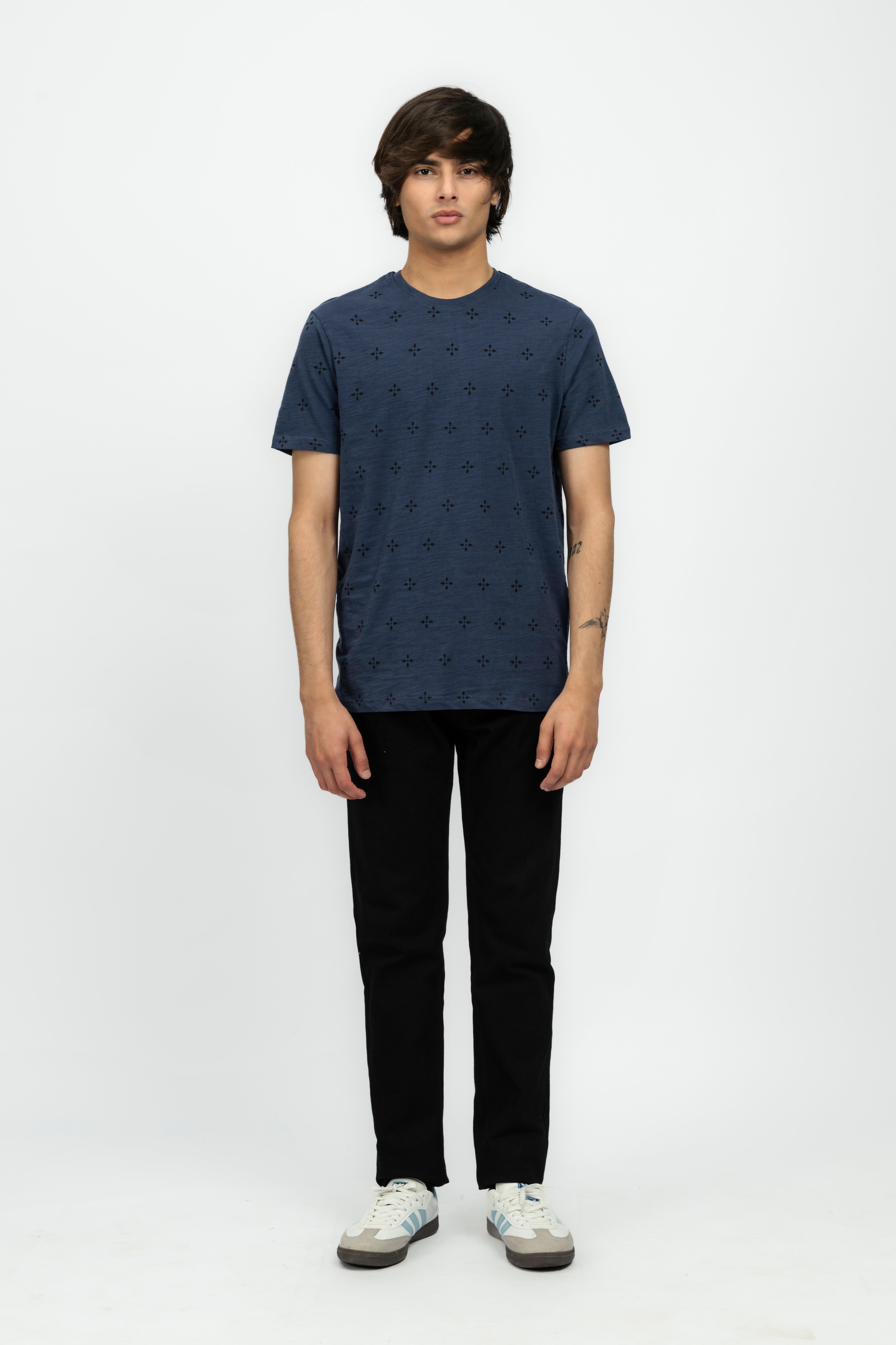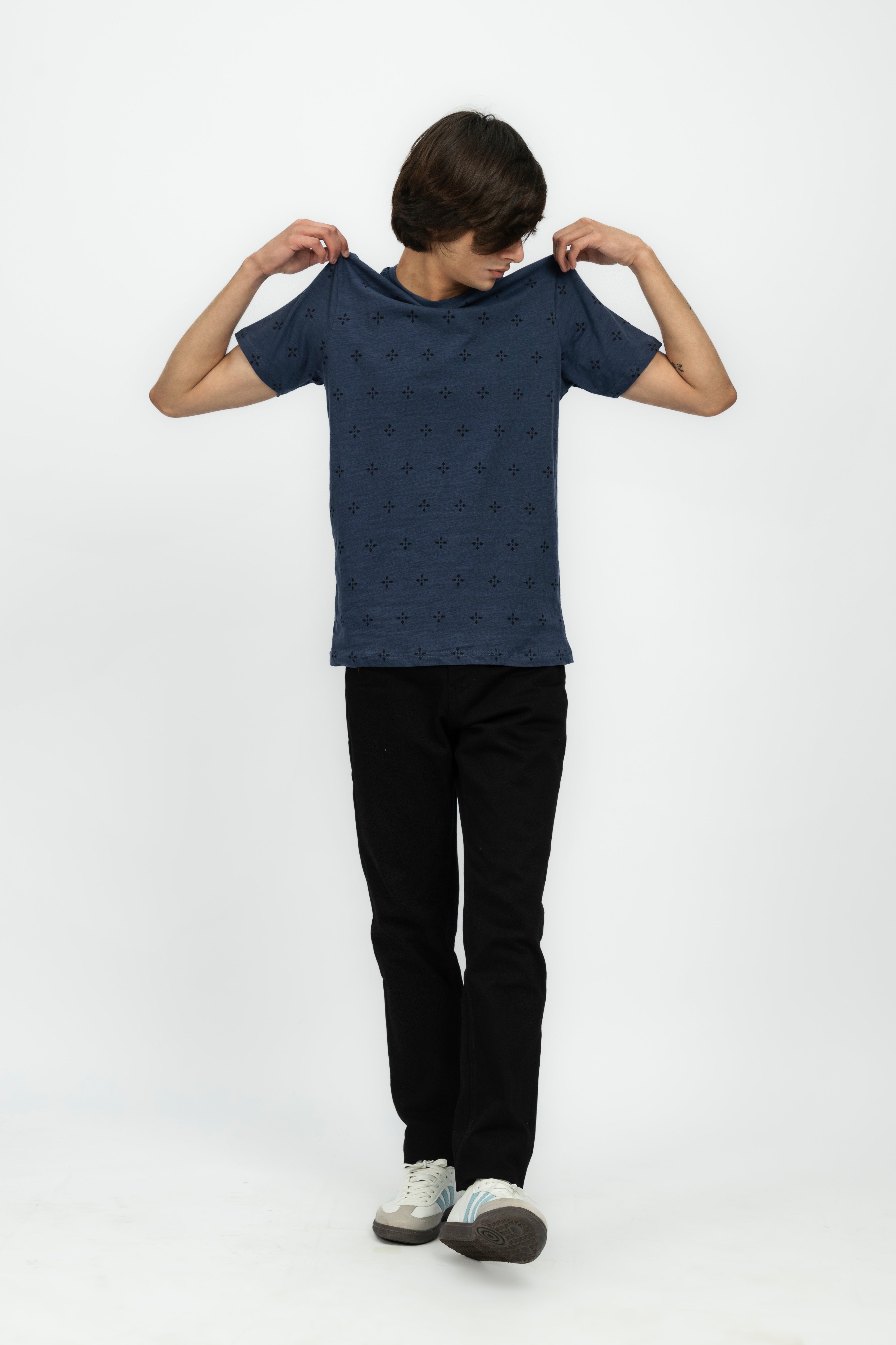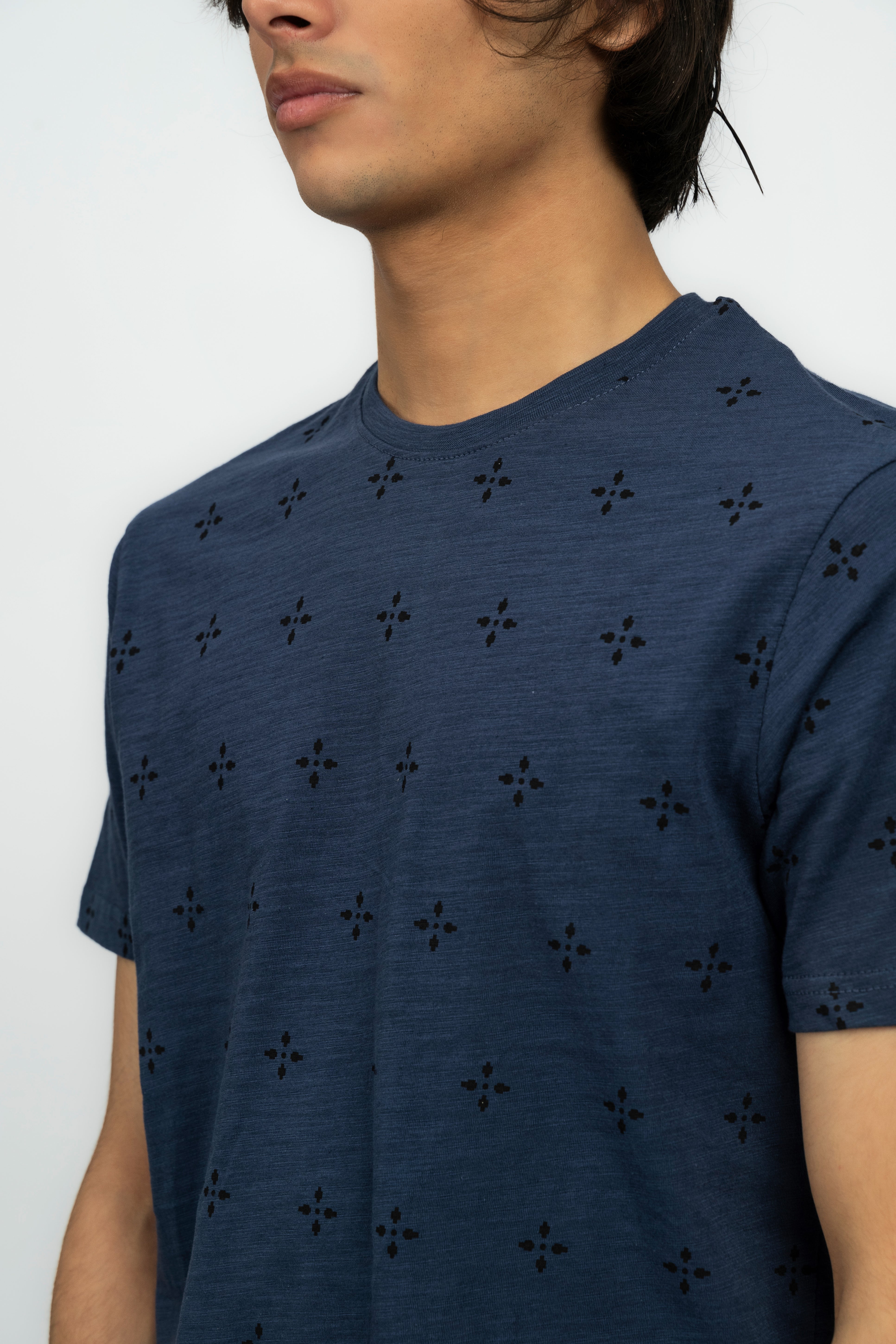 DescriptionAdd some angle to your wardrobe with our Geometric Print Men's T-Shirt. Featuring a unique geometric print, this tee adds a touch of style to any outfit. Made with soft, comfortable fabric, it's perfect for everyday wear. Get yours today and start making a statement! The product color might look a little different because of lighting or your device Material & Care:Fabric: Jersey | Color: Navy Blue Cycle: Use a gentle cycle Drying: Avoid drying in direct sunlight Bleaching: Do not use bleach Ironing: Avoid ironing directly on prints or embroidery |
