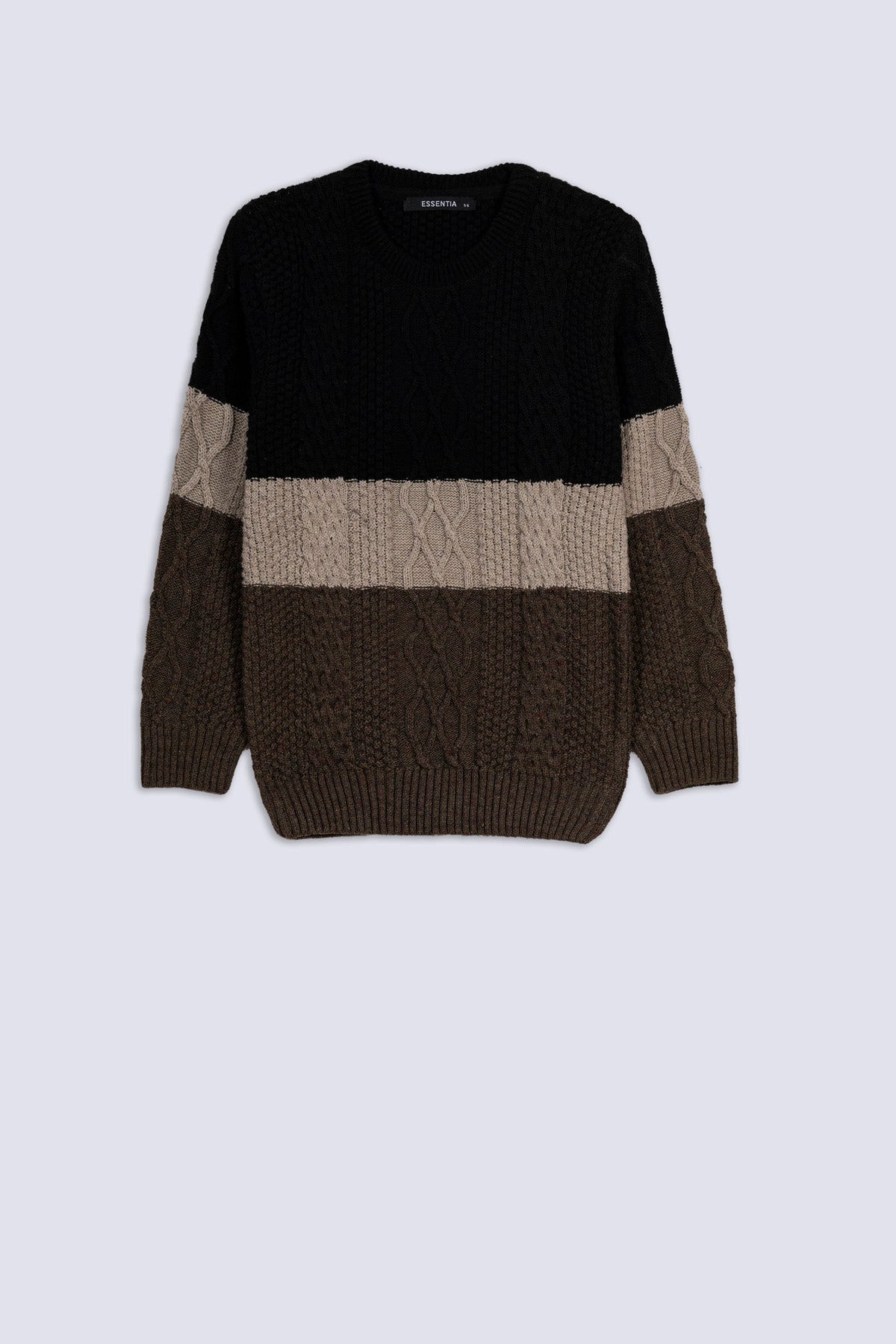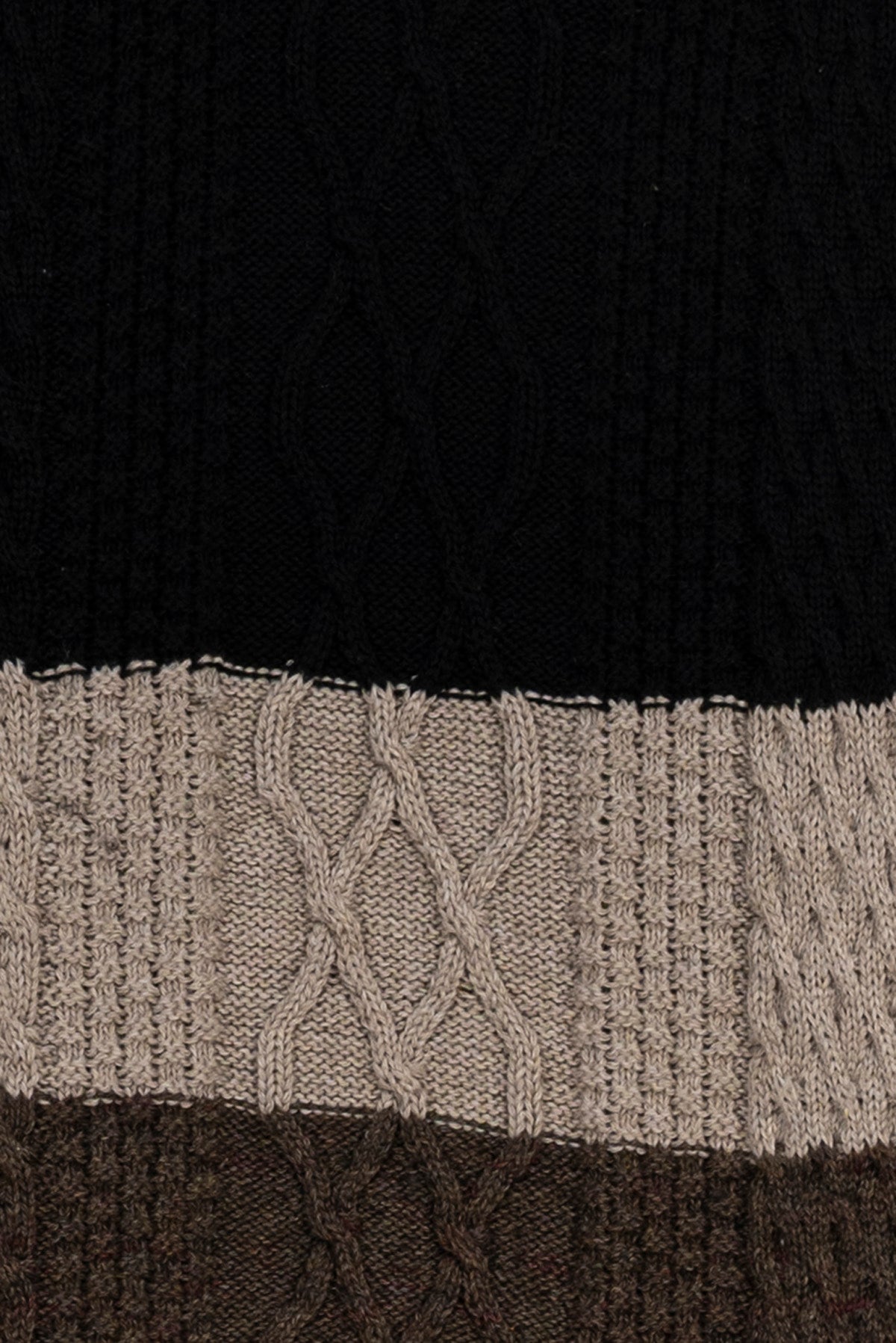 - Fabric: Cozy and warm, this knit combines three tones in a classic cable pattern for a bold winter look.
